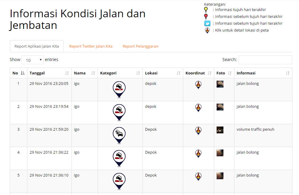 1. Pelaporan informasi bisa dilakukan oleh siapa saja, sehingga akan lebih mudah untuk mendeteksi kondisi jalan.