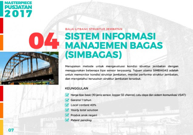 Merupakan metode untuk mengevaluasi kondisi struktur jembatan dengan menggunakan beberapa tipe sensor terpasang. Tujuan utama SIMBAGAS adalah untuk memonitor kondisi struktur jembatan, menilai performa struktur jembatan, dan mengetahui kerusakan struktur jembatan tersebut.
